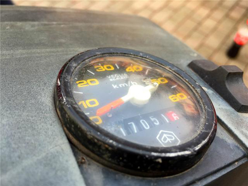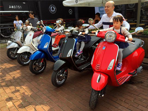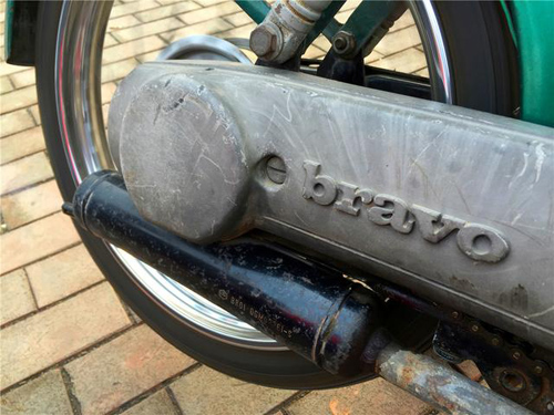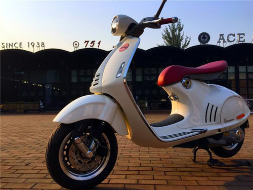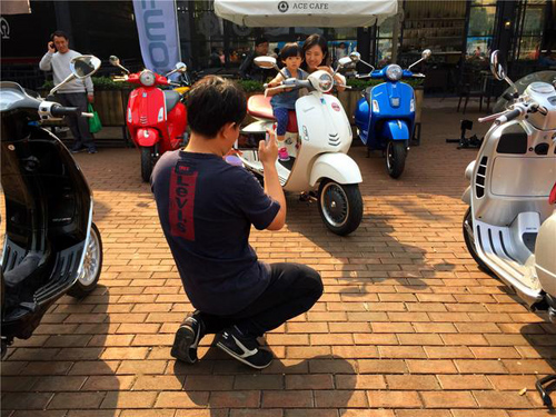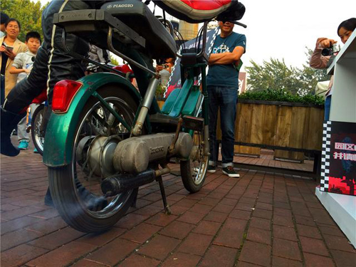 记忆里的高档摩托车~Piaggio bravo,在现场示范其独特的启动方式。