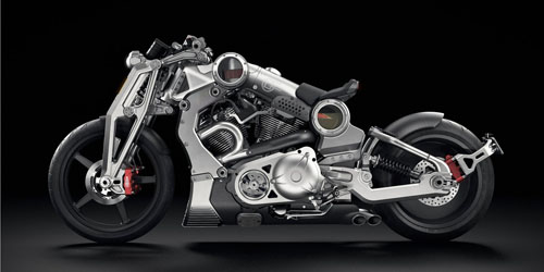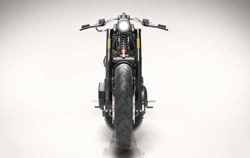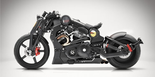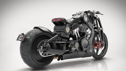该车采用一副风冷(带油冷装置)V 型 56 度双汽缸的发动机,排汽量 132 立方英寸(2,163 cc),最大马力输出达到 200 匹。发动机与整个车身的主体材料是以美标 6061 航空铝、再以 CNC 数控加工制作而成,外观造型采用了一个极为激进的裸露金属肌肉设计,以小量的碳纤组件作为衬托,而让人过目不忘的还有那巨大的 240/45ZR-17 后轮胎。