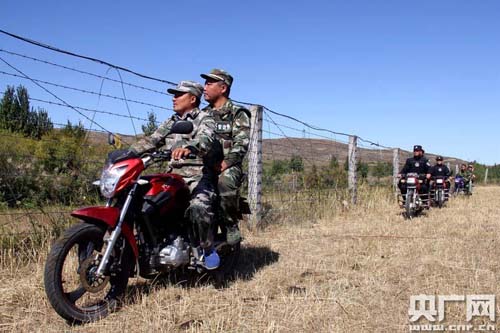 摩托护边队在边境一线巡逻(张巍巍摄)(央广网记者 张雷 摄)