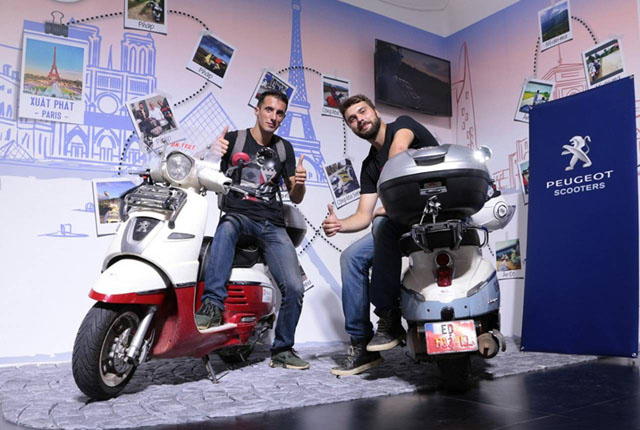两位来自法国的朋友,为了庆祝标致的踏板车在“踏板王国”越南开售,一路骑着Django(姜哥)从法国首都巴黎,飞奔7500英里抵达越南的胡志明市。这一壮举其实早在1956年就曾被两位法国士兵完成过,当时他们骑着两辆标致S57从西贡一直到巴黎,而60年后的今天,两位法国人反向复制了前辈们的壮举。