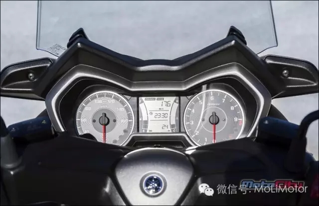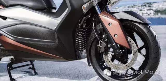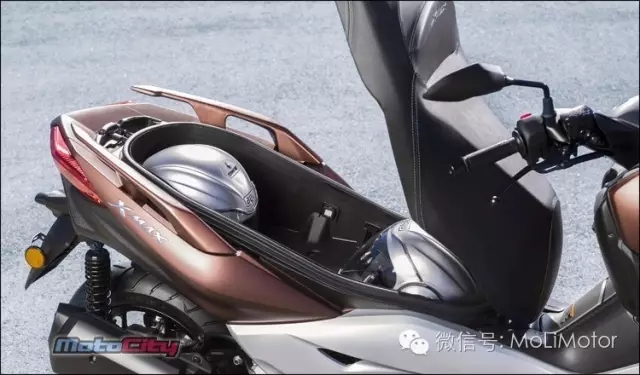 多了43cc的X-MAX 300 .马力增加7.6匹.但轴距反而缩小5mm.车长也更缩短.这样的设定无论是行进与停放都更利于市区的通勤使用