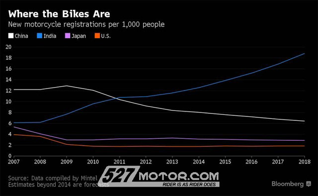中国摩托车市场的整体形势并不乐观,禁摩政策、人们对汽车的偏好以及电动车大军的崛起都对摩托车市场造成一定负面影响。根据市场调研公司敏特集团的数据,去年中国每1000人的摩托车注册数量是7.6台,而2009年这个数据是13人,尽管如此,中国的进口摩托车数量却在增长,所以说对于进口车型来说,中国仍然是一个很有潜力的市场!