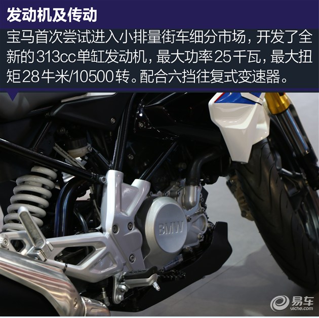 宝马在此次北京车展 带来了首款中小排量 车型摩托车G310R,虽然宝马方面没有公布任何技术细节,但宝马 摩托车中国区总监岳迪明表示将在一年内引进这款车,并表示价格非常具有竞争力。