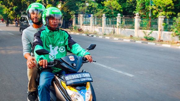 在其同事的建议下,她尝试了印尼的摩的打车软件———Go-Jek。她下载了这个软件,用手机预订并支付了一辆送她去机场的摩的的车费。