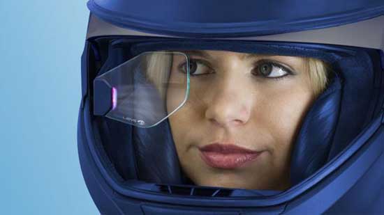 第一眼看去,这款设备如同是在摩托车头盔中增加了一个谷歌眼镜,只不过镜片比谷歌眼镜要大。