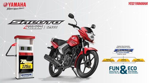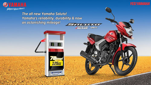 Yamaha 早前向印度当地市场发布了新的骑式车 Saluto。新车采用了一副以厂方的 “ 蓝芯 ”(Blue Core)技术为基础的风冷四冲程单汽缸、OHC 两汽阀的发动机,排汽量 125 cc,化油器供油。车身采用了钻石型的车架,前后18英寸的车轮,整备重量 112 公斤。 加上这个新的 Saluto,Yamaha 在印度当地市场在售的轻量级(风冷125、150)骑式车型超过了十个(FZ/Fazer 系列六个、SZ 系列三个、SS125、YBR125)。而新的 Saluto 最大的卖点是经济、实用,厂方称,新车是他们在同类产品中最轻的,同时也比他们过去的同类产品有着 10% 的节油能力。