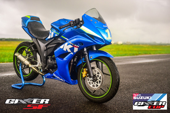 Suzuki 上周宣布将今年开办使用单一车型的、新的 GIXXER 杯锦标赛。该项赛事将跟随印度国家摩托车锦标赛同场进行,赛车则统一使用 20 部厂方在去年八月开始向当地市场销售的 150 cc 级骑式车 GIXXER SF (车辆经过改装)。 今年的印度国家摩托车锦标赛暂定有五个分站的比赛,首场的赛事是 6 月 5 到 7 号,在印度西南部城市、机动车辆部件采购中心的哥印拜陀市(Coimbatore,泰米尔纳德邦)卡里(Kari)赛车场举行;第二站(7 月 10 到 12 号)、第三站(8 月 7 到 9 号)、第四站(9 月 4 到 6 号)则在印东南部城市、泰米尔纳德邦首府钦奈(Chennai,又译为金奈)的马德拉斯(Madras)赛车场举行;第五站的举办时间、地点则待定。