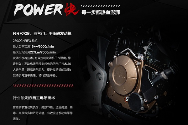 在市场众多品牌中,KP250水冷电喷发动机尽显四大优势。在带来更强的功率的同时,也大幅度降低了油耗,比传统摩托省油20%以上。这一切都得益于力帆摩托多年的倾力打造和研发,KP250发动机内核传承KP家族一贯的高性能基因,坚持”先上赛场、再上市场”原则,秉着对消费者负责的态度,无论在动力、操控还是稳定性方面都走在市场同排量车型前列。