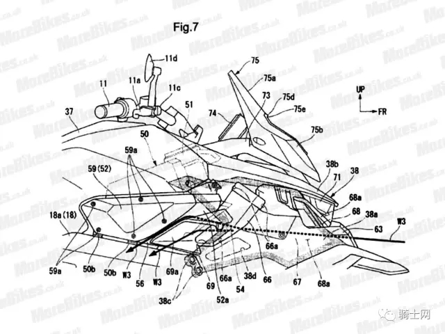 这次的专利书中除了披露机械增压机构之外,发动机型式也一改原先金翼的水平对置六缸,换成了对置四缸的新设计。图示也说明Neowing 的空滤盒是置中于油箱下方。机械增压的进气路线将由车头分别流入左右肩部进气道,再前往增压系统。由路线可看出,机械增压装置会在油箱下方,无法直接从外观看见。