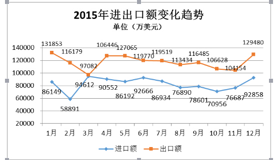 2015年12月内燃机行业出口总金额12.95亿美元,同比下降7.63%;全年累计出口金额140.84亿美元,同比下降3.70%。