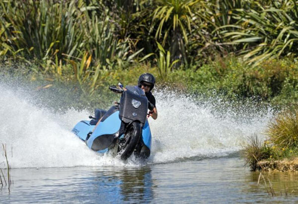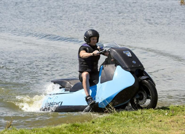 但一直致力于研发两栖车辆的Alan Gibbs推出了新型两栖摩托Biski,它在陆地上的速度可达到129千米/小时;而当你快行驶至水岸边时,只需花大约5秒的时间就能把它切换到水上摩托模式,它在水面上的最高行驶速度可达60千米/小时。
