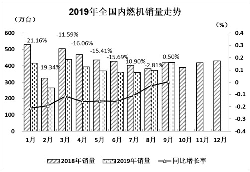 1-9月内燃机累计销量3400.25万台,同比增长-12.67%。累计功率完成171341.53万千瓦,同比增长-10.49%。