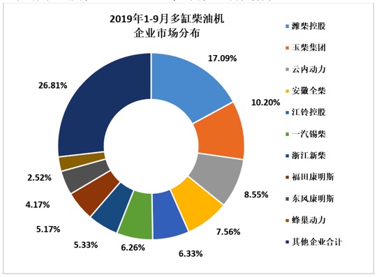9月商用车产销环比均10%以上增长,受其影响,配套商用车市场达60.70%的多缸柴油机销量有所改善。9月多缸柴油机市场销量环比大幅增长、同比小幅增长,同比累计降幅较上月继续收窄。9月,多缸柴油机企业共销售37.24万台,环比增长24.40%,同比增长7.50%,累计销量323.42万台,同比增长-1.90%。分企业看,潍柴、玉柴、云内、全柴、江铃、锡柴、新柴、福康、东康、蜂巢动力前十名销量占总销量的73.19%,前十集中度较上月(73.00 %)略有增长;市场份额占比中:潍柴17.09%;玉柴10.20%;云内、全柴、江铃、锡柴6.26%~8.55%,新柴、福康5.17%~5.33%;东康、蜂巢动力2.52%~4.17%。