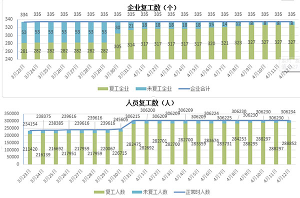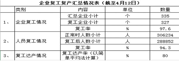 截至4月12日,内燃机行业工收集企业335家,复工企业327家,企业复工率97.6%;复工人员288852人,人员复工率94.3%;根据企业达产率按平均法计算复工达产率为80%。复工复产率稳步提升。