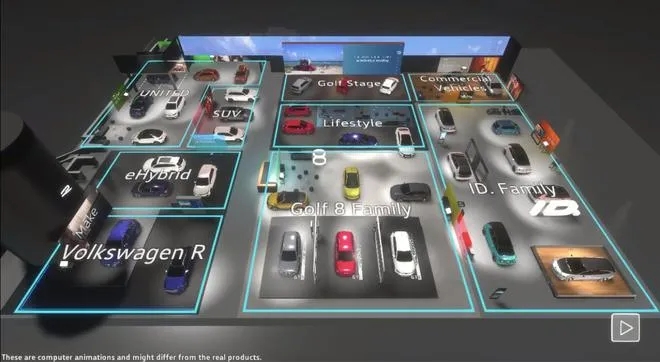 事实上,在隔壁的汽车行业也有类似的举措。大众就别出心裁的通过虚拟现实技术,还原出了已经宣布取消的2020年日内瓦车展的大众展区,将没有出现在展台的全球首发车型全部放在了官网之上供所有来宾品鉴,唯一的不同可能只是缺少美女车模和展台工作人员。