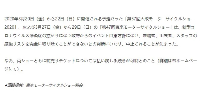 官方公告东京/大阪摩托车展取消