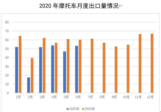 上半年,全球疫情持续蔓延,对我国摩托车出口产生了严重的冲击,整车出口量明显下滑。6月出口量环比有所回升,但与去年同期相比仍有较大差距。