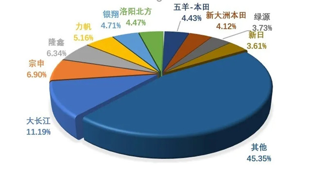 上半年,摩托车销售前十名企业(集团)为大长江、宗申、隆鑫、力帆、银翔、洛阳北方、五羊-本田、新大洲本田、绿源、新日,分别销售80.79万辆、49.84万辆、45.78万辆、37.28万辆、34.02万辆、32.25万辆、31.97万辆、29.75万辆、26.91万辆和26.04万辆。上述十家企业累计销售394.62万辆,约占摩托车总销量的54.64%,与去年相比下降了约4个百分点。