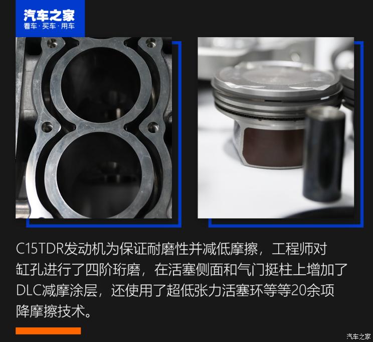 发动机内的很多接触部件纯靠滑动摩擦的,所以如何减少摩擦阻力对于提升发动机的效率来说至关重要,因此,C15TDR发动机在这个环节也做了一些深度优化。